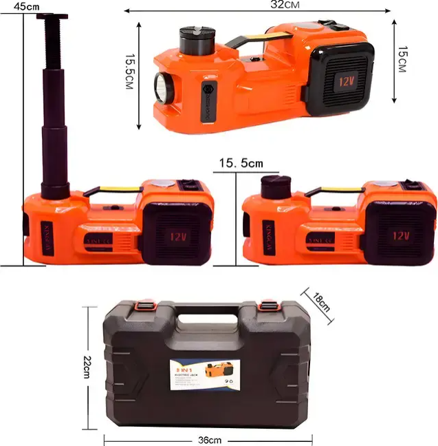 Електродомкрат ZSY03-X 12V — це універсальний автомобільний набір, який поєднує електричний домкрат, компресор та світлодіодний ліхтар в одному корпусі. Ідеальне рішення для швидкої та безпечної заміни колеса, ремонту або обслуговування автомобіля в дорозі чи гаражі.